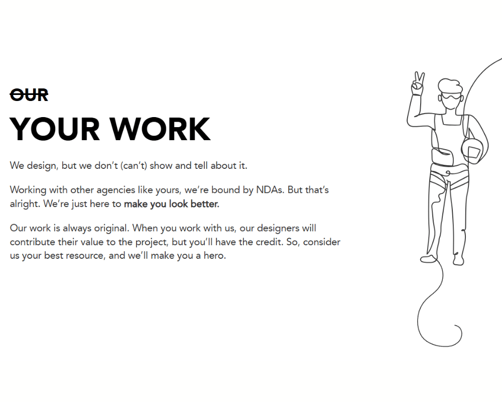 The team can support multiple types of design requests across web and marketing assets. It’s typically chosen by smaller agencies scaling their service offerings.