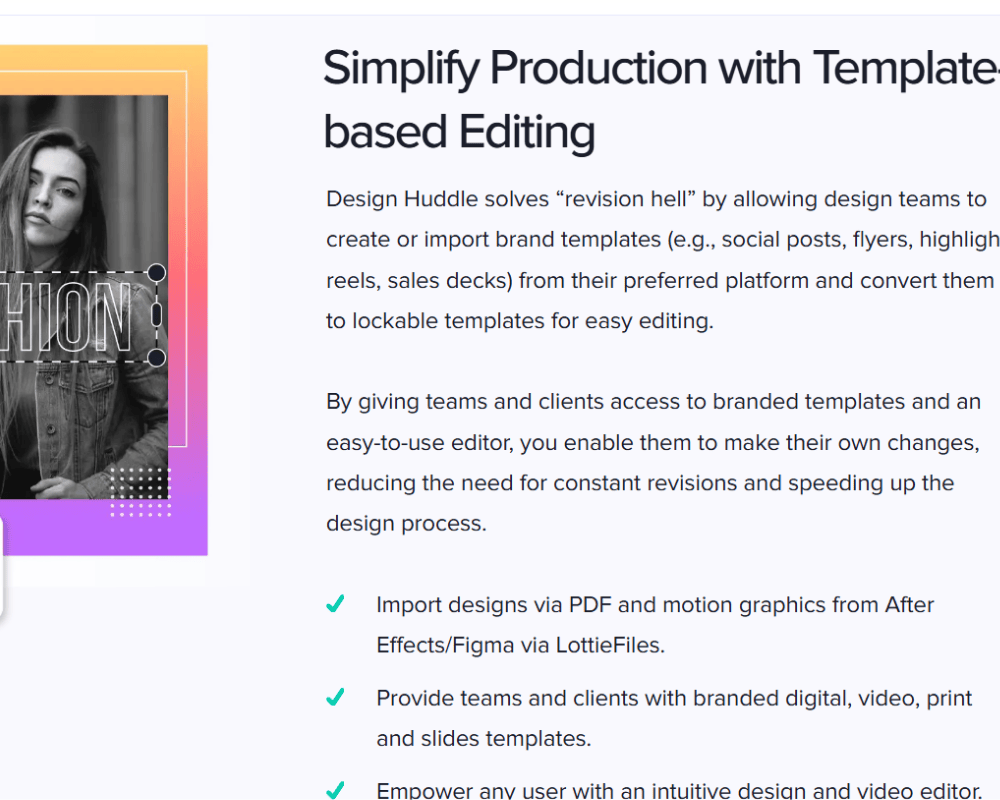 Design Huddle is a cloud-based platform that allows agencies to create branded assets using controlled templates. Instead of traditional outsourcing, it enables clients or account managers to generate approved designs quickly.