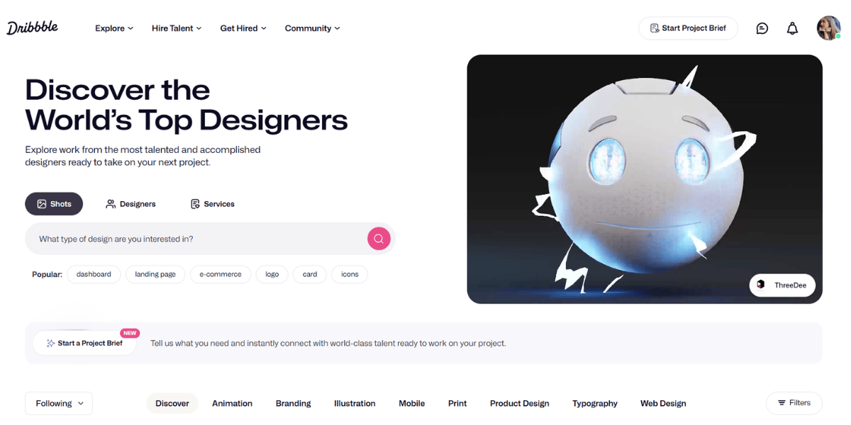 Dribbble is where senior designers and art directors showcase their work. You can post a project, browse portfolios, and hire directly.