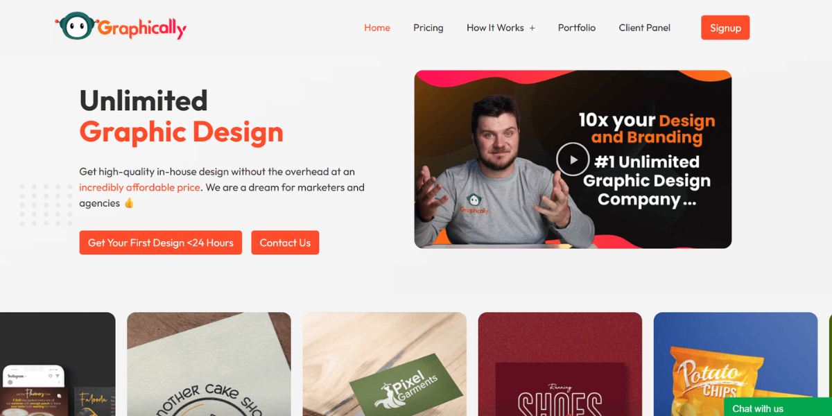 Graphically offers a clean, mid-market subscription product with solid quality across standard graphic design deliverables. Its pricing is on the lower end, making it a natural consideration for teams with very limited budgets.