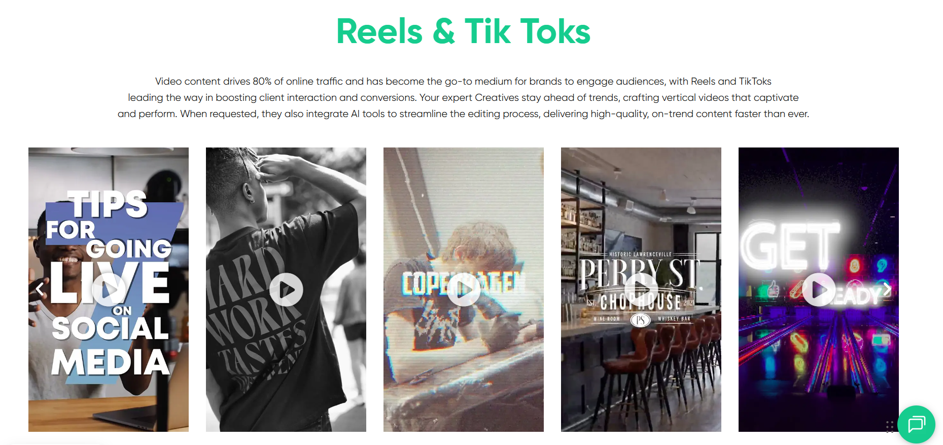 They’re ideal for marketing teams that need frequent, repeatable output. For highly complex edits (multi-scene storytelling, heavy VFX, complex 2D and 3D animation, color grading), specialized editing companies or a full production studio may be a better fit.