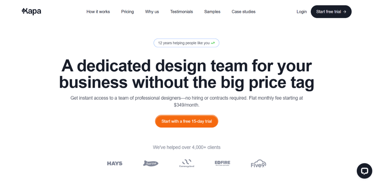 Kapa99 is a flat-rate graphic design service aimed at providing businesses with unlimited requests and revisions for a fixed monthly fee.